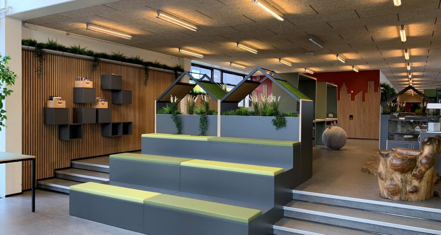 Mulighederne er mange med akustikpaneler til skoler. Indret med træpaneler på vægge eller lofter - eller måske begge dele for at skabe den helt rigtige "hule-stemning". Der er også mulighed for at skabe bedre akustik med vores Flexi Frame, der sættes op på de eksisterende flader. Du kan også overveje skillevæggene Flexi Wall. Skab naturlige grænser med eksempelvis loungeområde og arbejdsstationer.