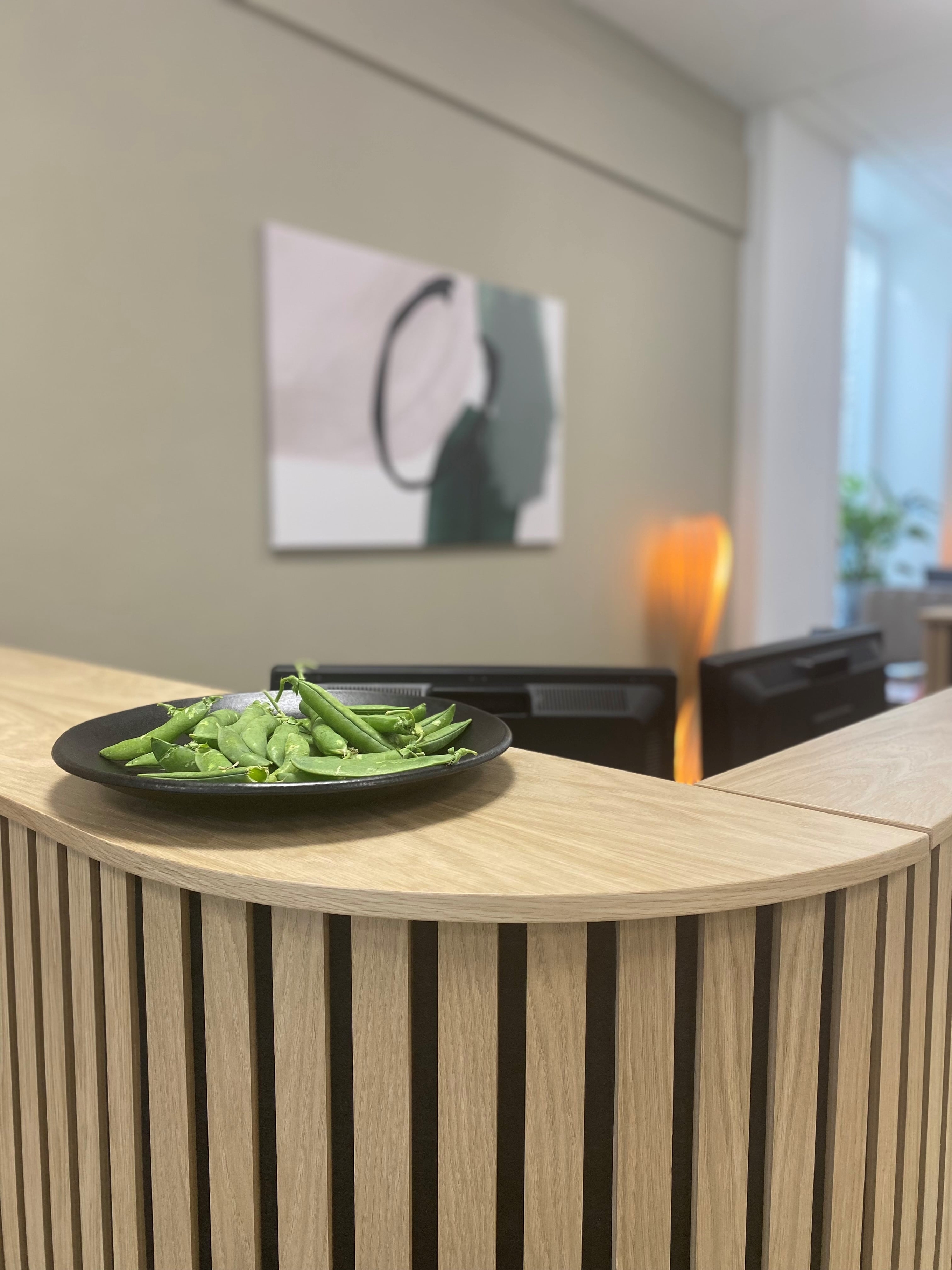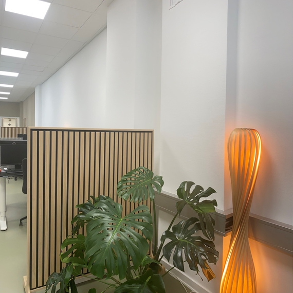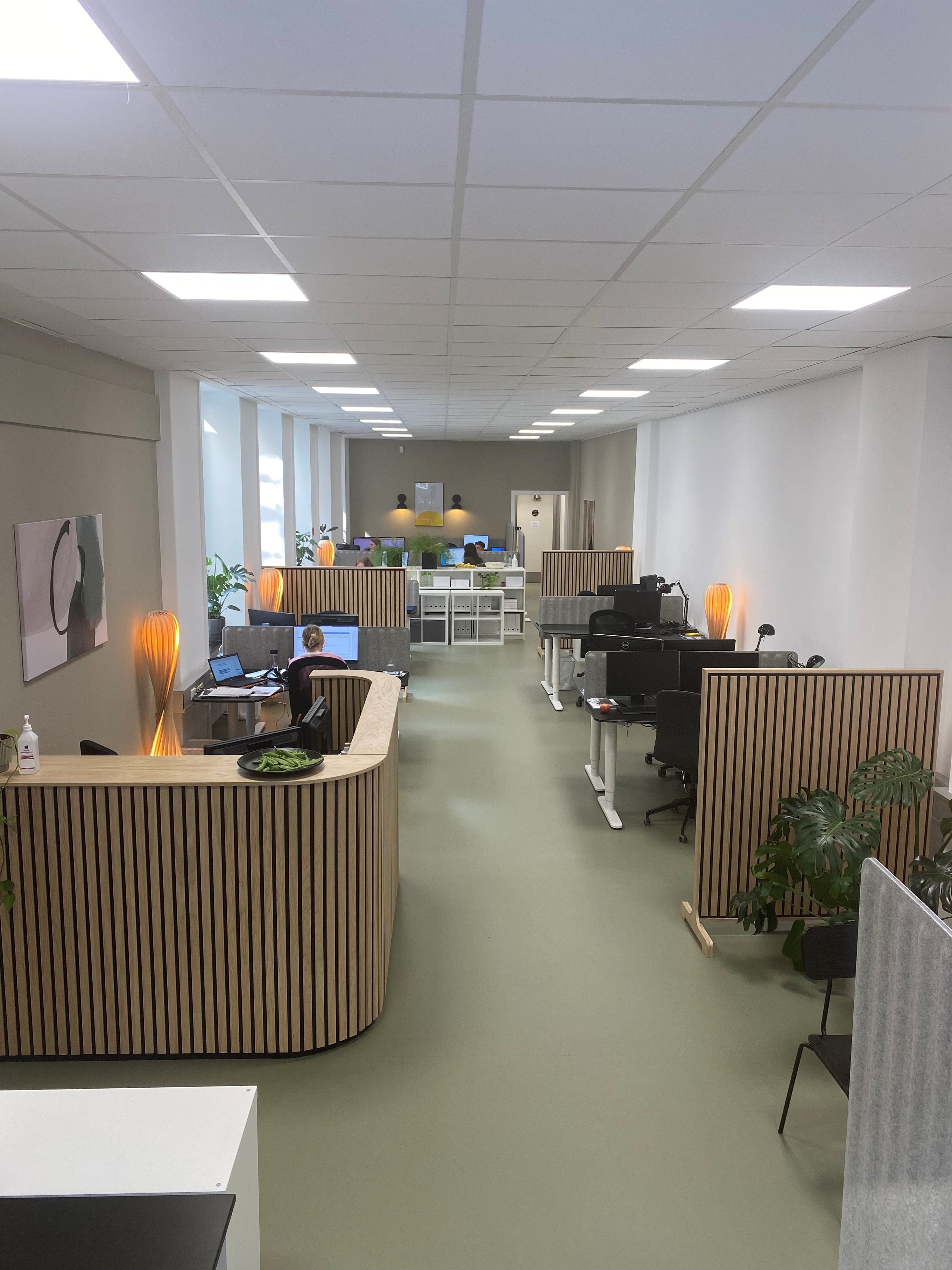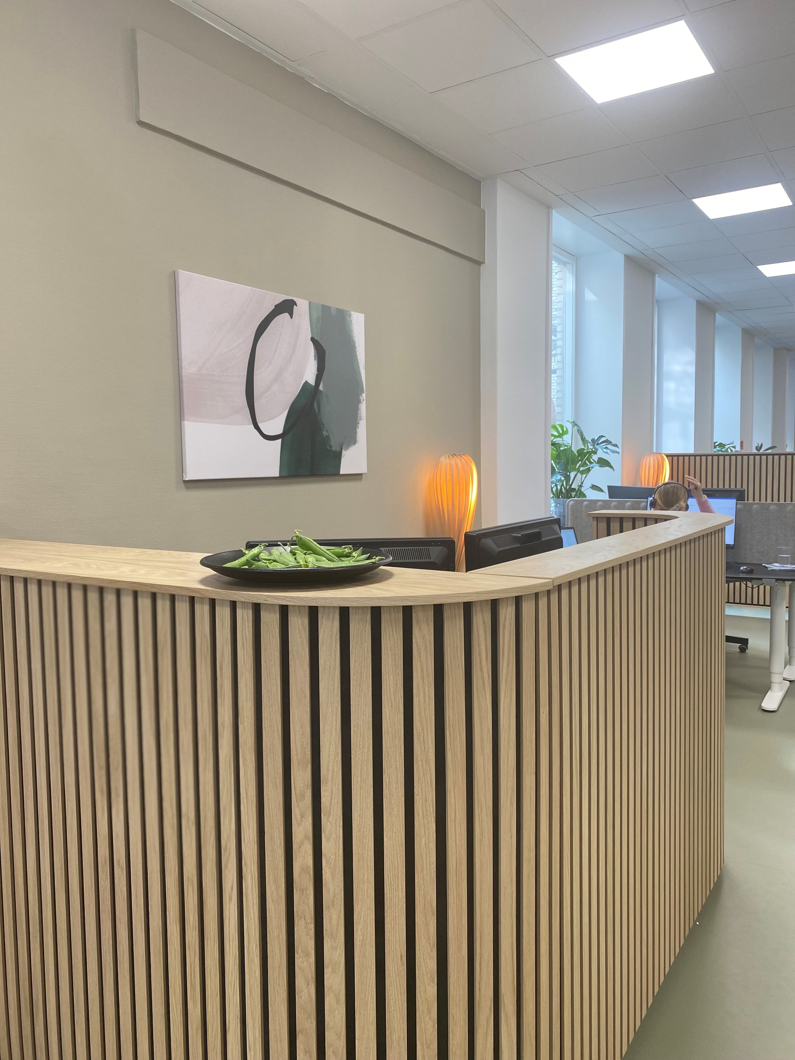 Building Green arbejder for at skabe et community inden for bæredygtigt byggeri, og derfor var det også lidt af et drømmematch, da de gerne ville have I-Wood Flexi Wall samt en receptionsdisk med de fine træpaneler fra I-Wood Denmark®. På den måde har Building Green inviteret naturen ind, og samtidig fået en løsning der gavner æstetikken og akustikken på arbejdspladsen.