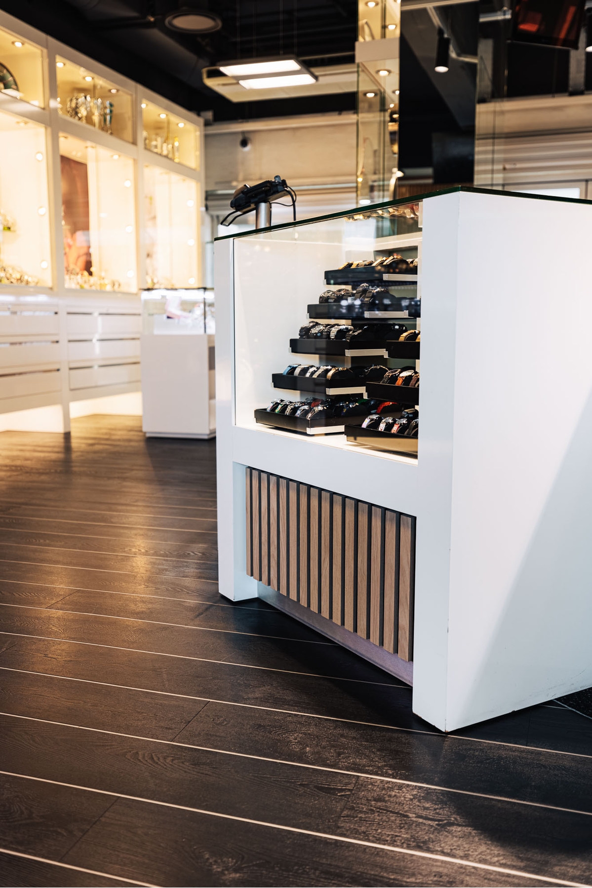 Butikken stod over for en opfriskning og her valgte de at benytte paneler fra I-Wood. Ure og smykker skulle præsenteres i mere varme og hyggelige omgivelser. Ikke kun glas og store montre – men flere hyggelige små miljøer.