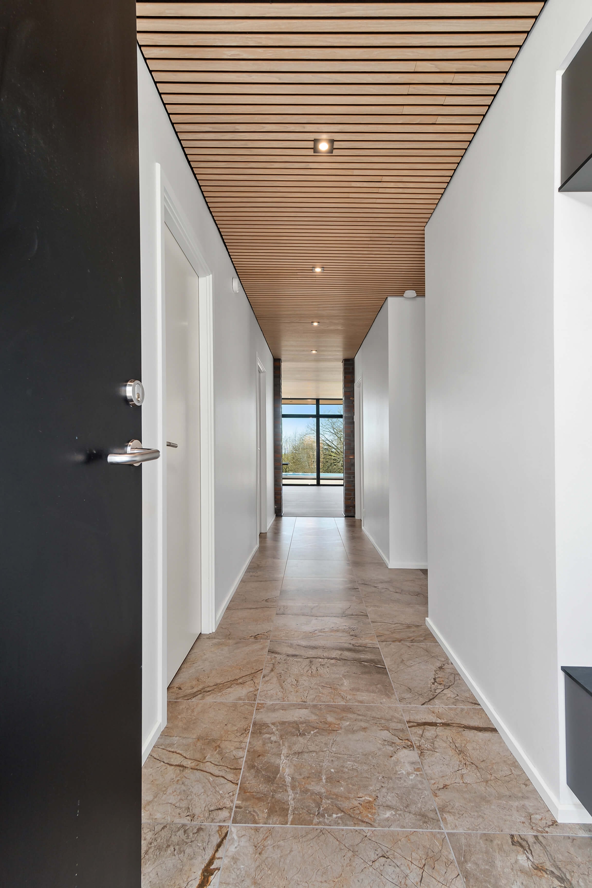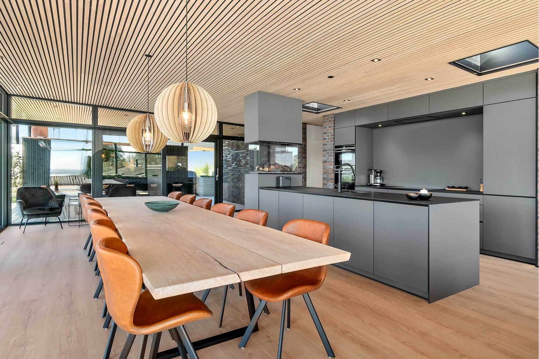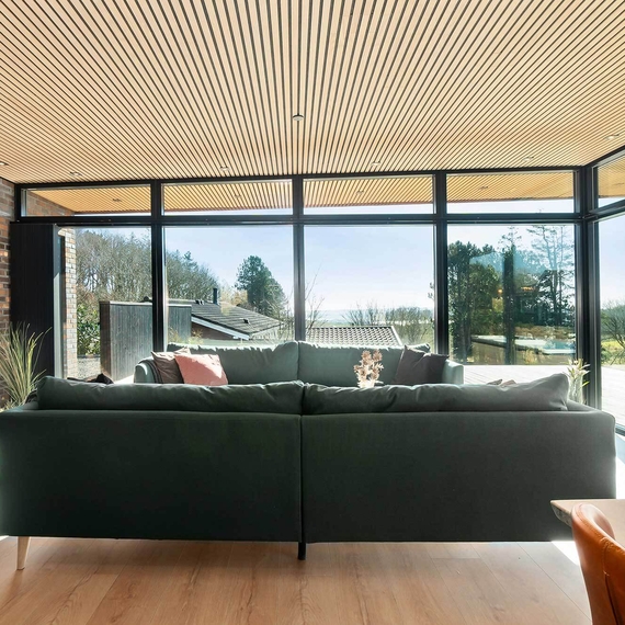 Lige netop derfor er valget af loft endt med akustikpaneler fra I-Wood Denmark®. Det naturlige træ skaber en god kontrast til de hvide vægge og hårde gulve. Uden at gå på kompromis med æstetik eller den nordiske designtradition, som vi også holder så meget af hos I-Wood Denmark®.