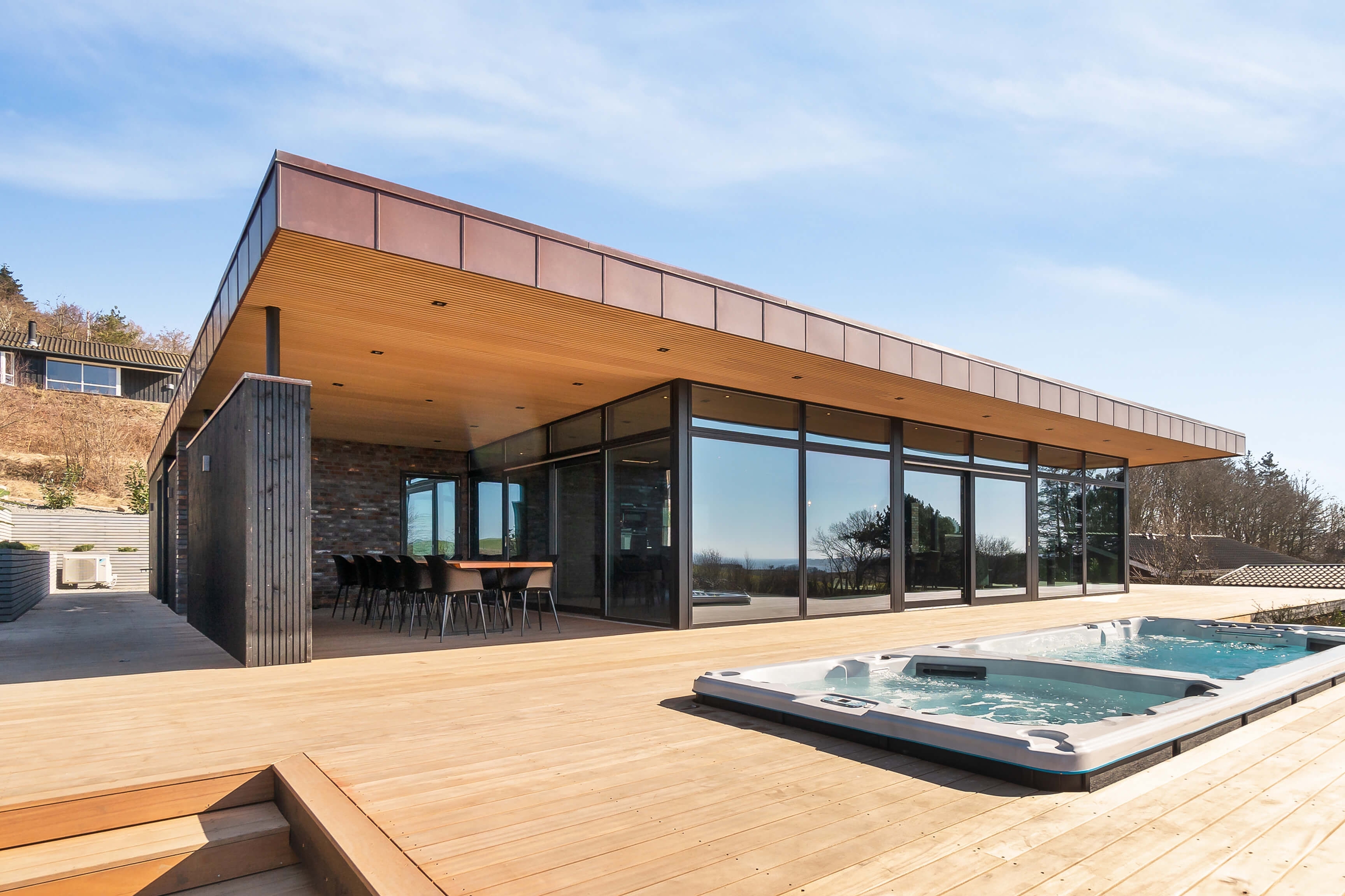 I dette nybyggede sommerhus i Knebel har der fra starten været fokus på gode, naturlige materialer. Derudover er planen med sommerhuset at skabe et samlingssted med rum, som alle vil elske at være sammen i.
