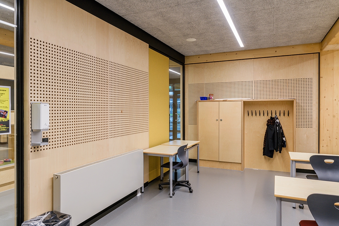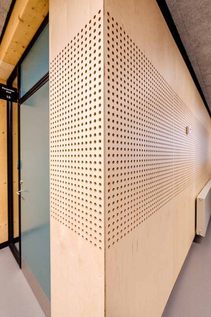 ”Der var krav om gennemgående finer på alle de indvendige panelvægge. Derudover skulle nogle paneler brandbehandles og andre perforeres. Det kunne I-Wood klare. De var meget løsningsorienterede og engagerede i projektet. Jeg kan helt bestemt anbefale I-Wood til andre. Vi vil helt sikkert også bruge dem igen."