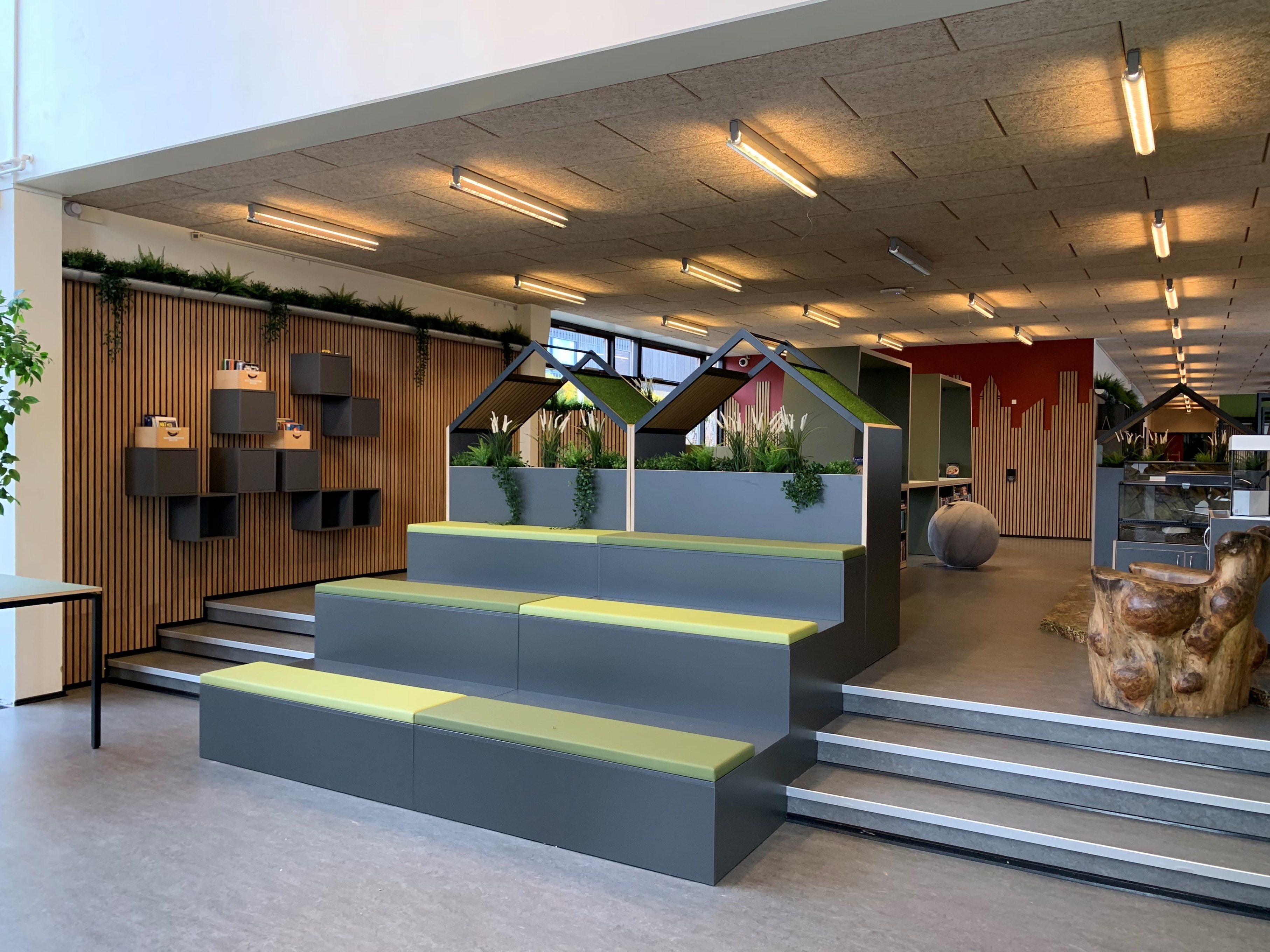 En central udfordring var at forbedre akustikken. Løsningen blev I-Woods akustiske træpaneler, som sikrer en optimal efterklangstid og samtidig giver rummet et moderne, stilrent og harmonisk udtryk. Den forbedrede akustik skaber et miljø, hvor man kan fokusere på opgaven frem for støjen.
