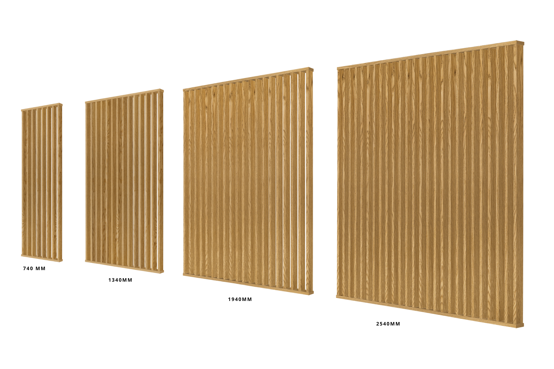 - Top- og bundprofil: 31x110mm x 740 mm / 1340 mm / 1940 mm / 2540 mm