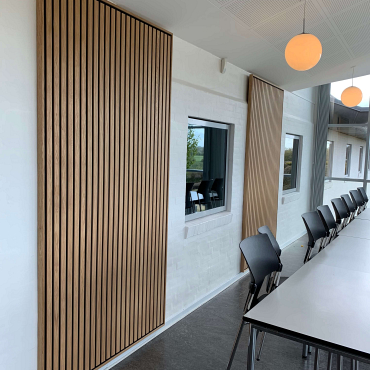 Paneler fra I-Wood Denmark® har en lydabsorberende egenskab og sikrer en forbedret akustik og mindsker støjgener. Flexi Wall og Flexi Frame har begge en indbygget 22mm isolering – altså et lydabsorberende materiale. Dermed har de to produkter både en diffuserende samt en absorberende effekt og vil derfor forbedre rumklangen samt akustikken i lokalet.