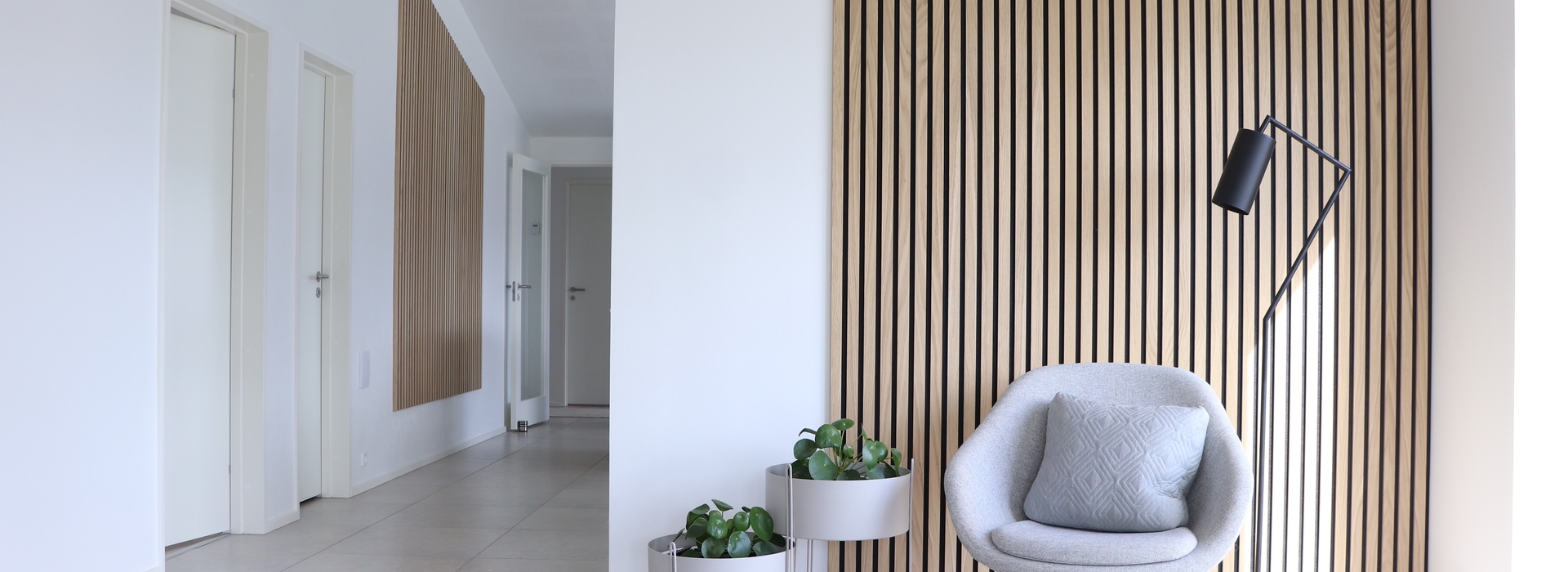 Skab harmoni. Skab ro. Skab rum, du har lyst til at leve i. Med vores effektive akustikpaneler kan du ændre atmosfæren i dit hjem – både for øjet og for øret. De usynlige samlinger sikrer perfekt finish uanset, om du fylder en hel væg eller blot bruger et enkelt panel.